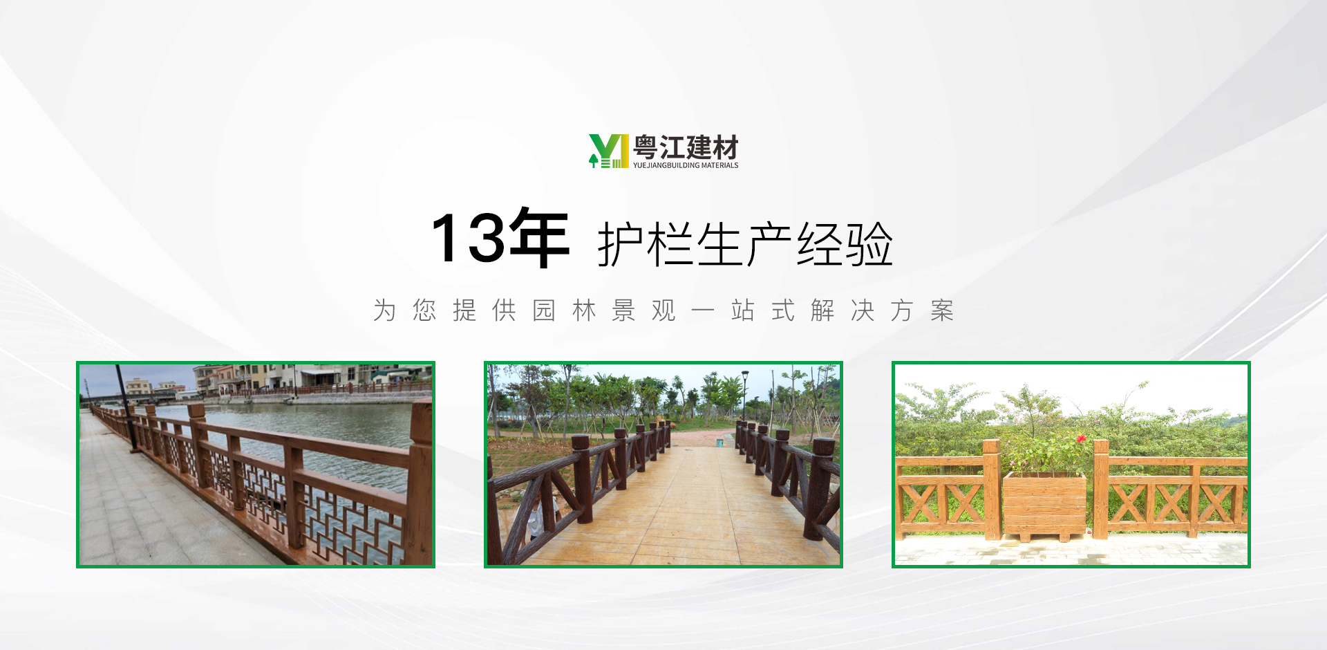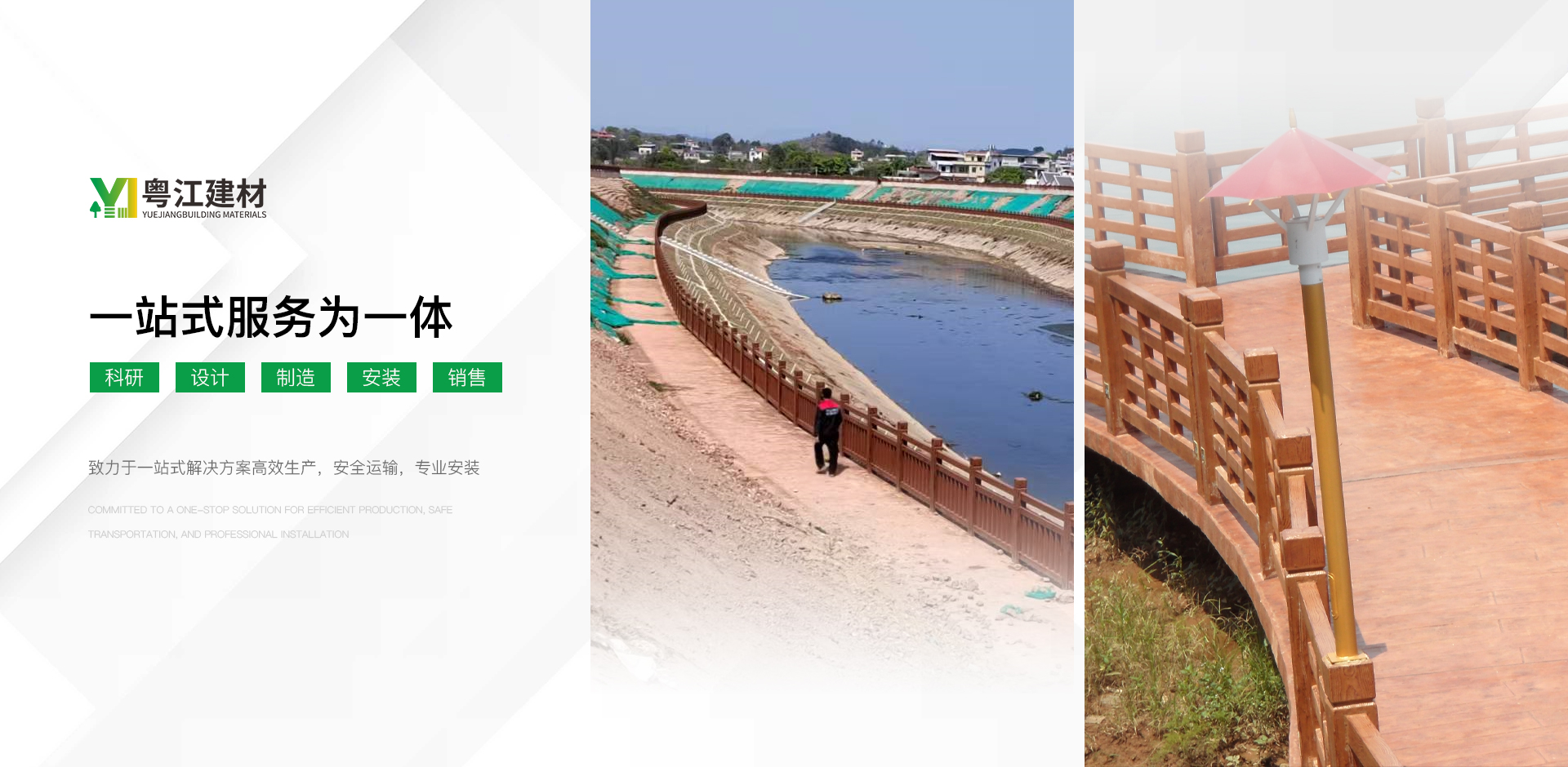 江門市粵江建材有限公司隸屬于中山市鴻文園林景觀工程有限公司(前身為成立于2010年——中山市三圣園林景觀工程有限公司,2021年更名為中山市鴻文園林景觀工程有限公司)旗下子公司,成立于2022年,公司坐落于粵港澳大灣區(qū)重要節(jié)點(diǎn)城市—鶴山市,占地10余畝,現(xiàn)有員工50余人。是一家專業(yè)從事園林護(hù)欄設(shè)計及施工一體化的園林景觀工程公司,公司擁有仿木、仿石、仿竹、鑄造石四大系列產(chǎn)品,主營產(chǎn)品有:河道護(hù)欄、橋梁護(hù)欄、仿木護(hù)欄、仿漢白玉護(hù)欄、仿石護(hù)欄、鑄造石護(hù)欄、仿竹護(hù)欄、仿木護(hù)岸樁、仿木花架、仿木花箱、仿木地板、組合護(hù)欄、棧橋等景觀產(chǎn)品。產(chǎn)品涉及水利建設(shè)、景區(qū)建設(shè)、城鎮(zhèn)園林建設(shè)、小區(qū)美化建設(shè)、新農(nóng)村改造等景觀裝飾。